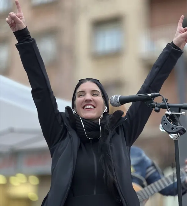 Cada trimestre preparamos canciones para cantarlas en las calles de Horta, un barrio lleno de vida, además de ser el lugar donde se encuentra el estudio. Estos conciertos al aire libre son emocionantes: nos ayudan a aplicar lo aprendido, trabajar en equipo y conectar con el público. Ver a la gente disfrutar, sonreír o unirse a cantar hace que la experiencia sea única y muy gratificante.